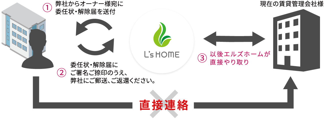 現在の賃貸管理会社様とやり取りする必要はなく、面倒な手続き等はありません!